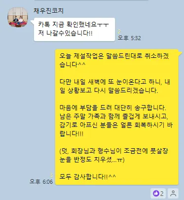 일요일 저녁 제설작업 추진은 정말 죄송하게 생각합니다.