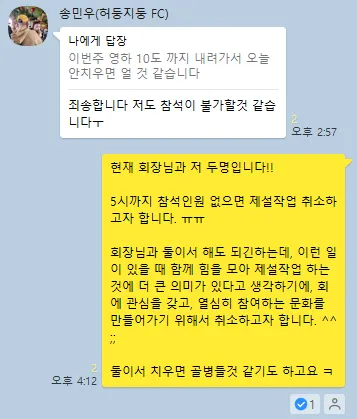# 경기취소로 회장님과 신입회원과 급 아침식사