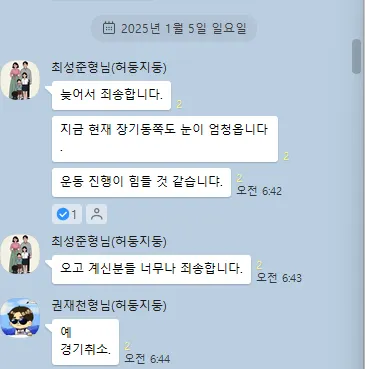 2025.01.05 시범리그 1R는 아쉽게 폭설로 취소되었습니다.